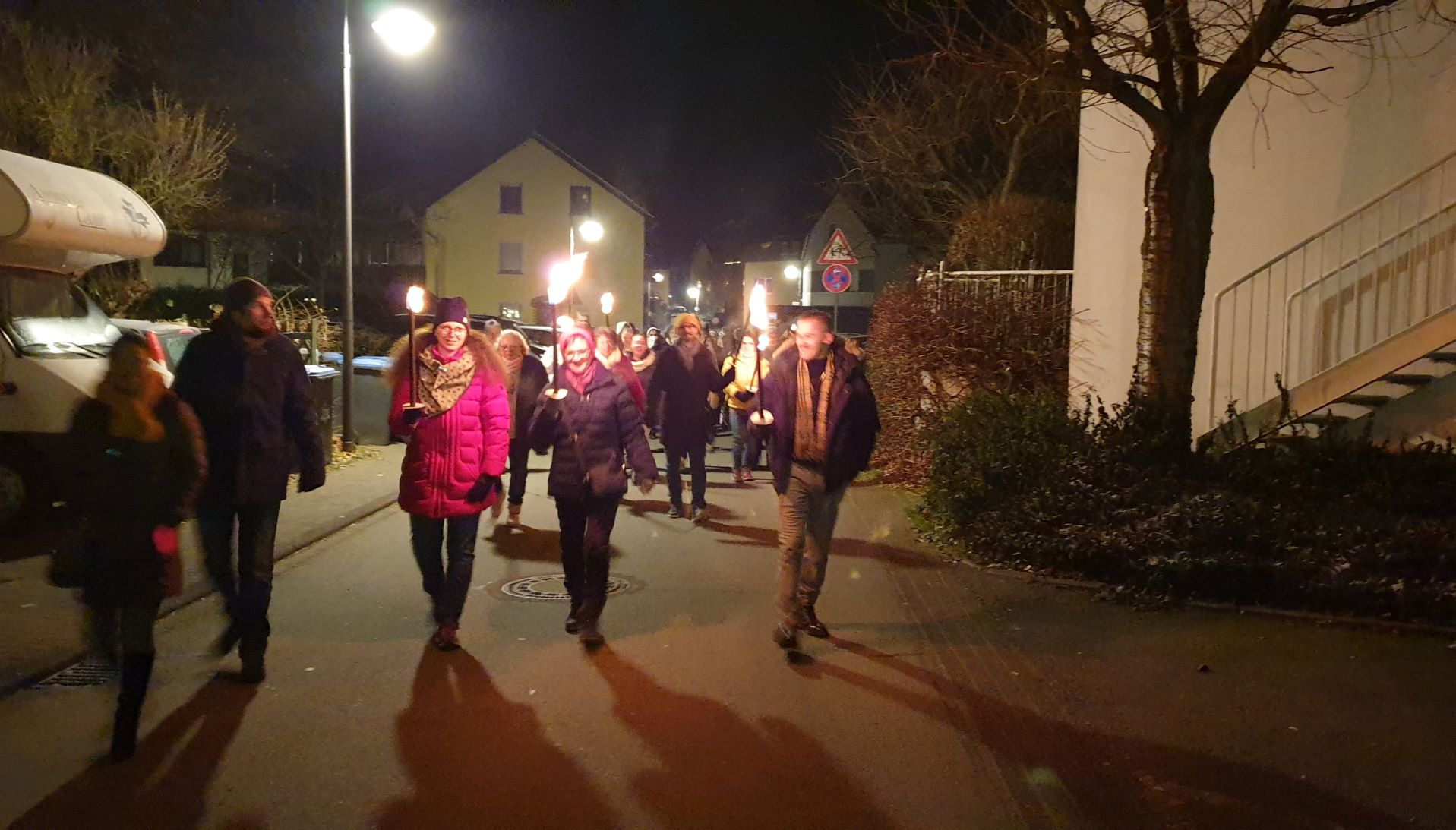 Nach der Messe wurden vor der Pfarrkirche Pechfakeln entzündet, mit denen die Gottesdienstteilnehmer nicht auf direktem Weg, sondern durch Altschweicher Straßen zum Altenheim St. Josef zogen. Dort waren Zelte, ein Essensstand und ein großer Weihnachtsbaum aufgebaut.