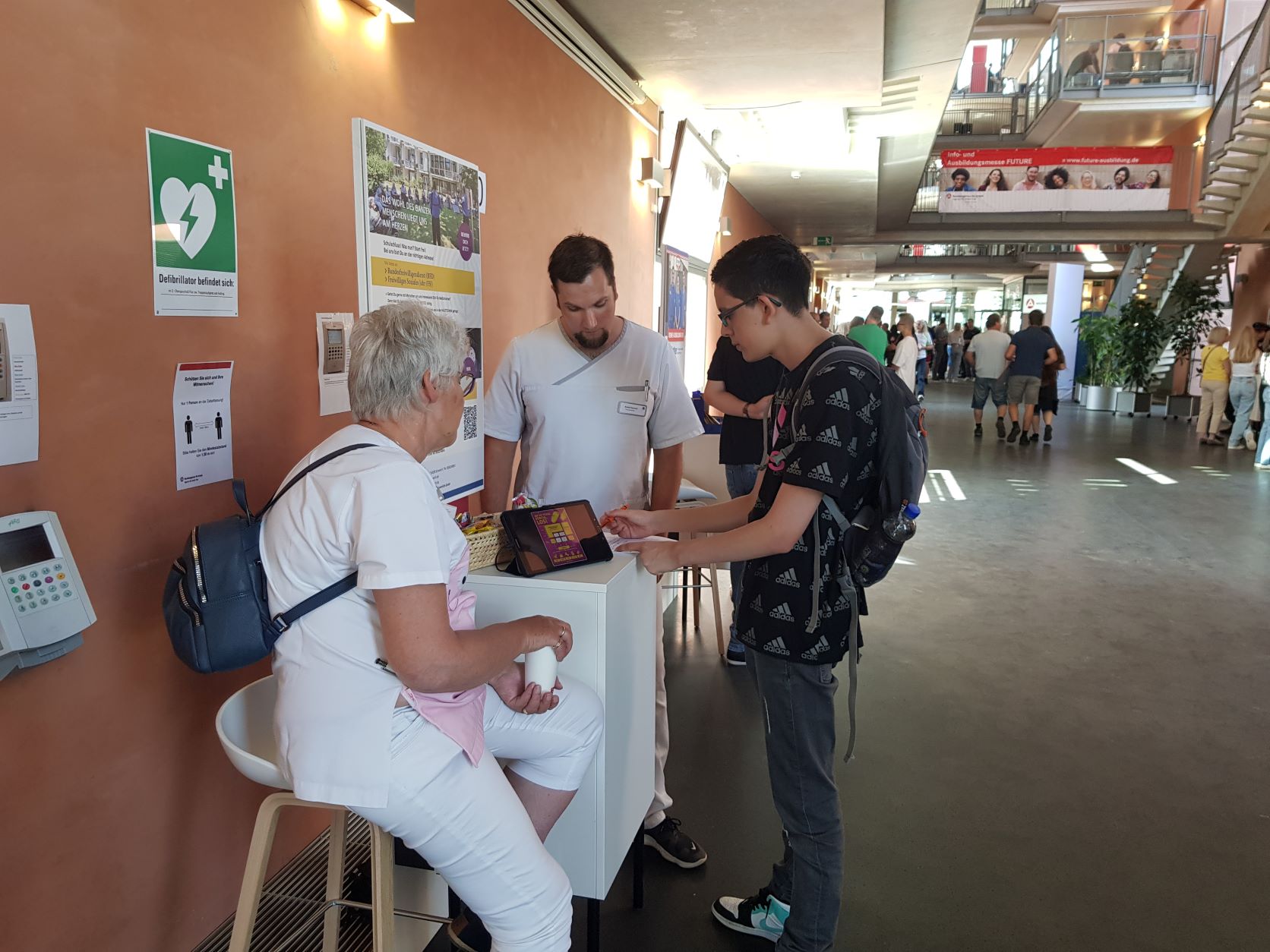 Am 1. Messetag hatten Schülerinnen und Schüler unterschiedlichen Alters und Geschlechts viele Fragen zum „Freiwilligen Sozialen Jahr“, das wir in Kooperation mit den „Soziale Lerndienste im Bistum Trier“ anbieten. Erfreulicherweise gelang es durch fachlich versierte Beratung bei mehreren Schülern das Interesse an Praktika bis zum Einstieg in die Ausbildung zu wecken.