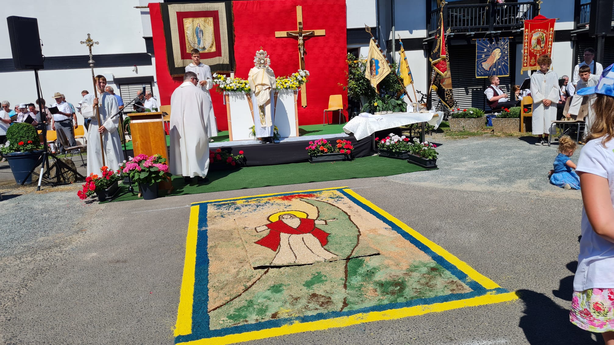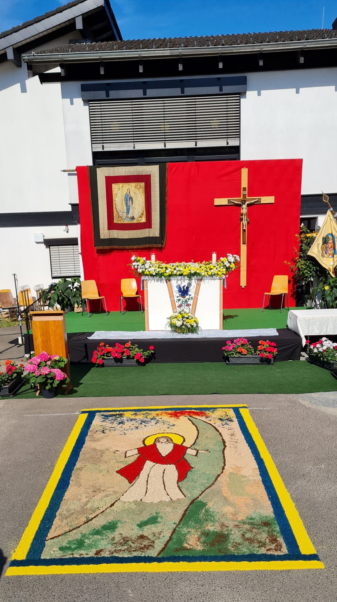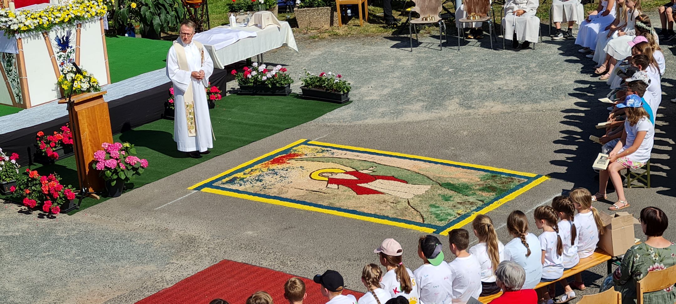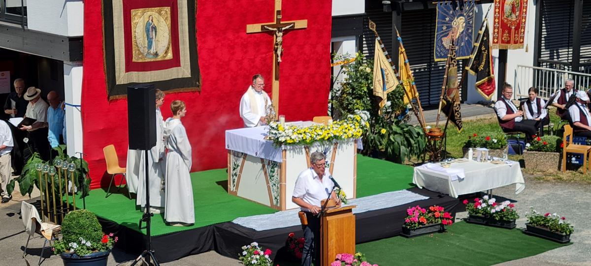 Traditionell war der Hauptaltar auf dem Gelände vom Altenheim St. Josef, wo auch der Gottesdienst zelebriert wurde. Alles lief wie am Schnürchen, denn die handelnden Akteure arbeiten an Fronleichnam seit Jahren bestens und harmonisch zusammen.