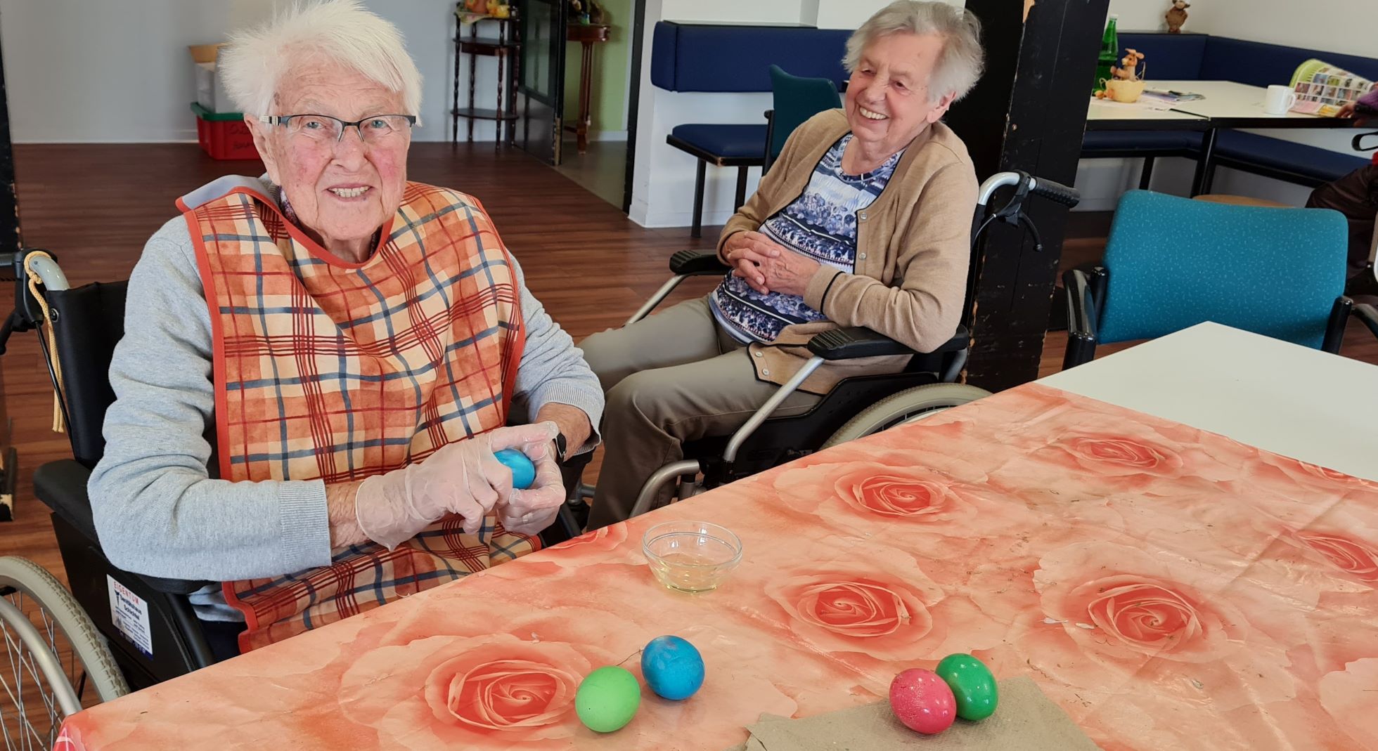 Mit Begeisterung färben zahlreiche Bewohnerinnen und Bewohner mit unseren Betreuungskräften bunte Eier, die an den Ostertagen verschenkt und verzehrt werden.