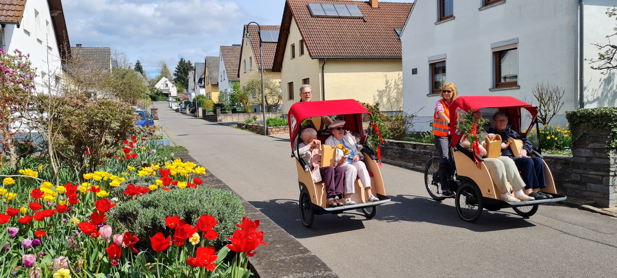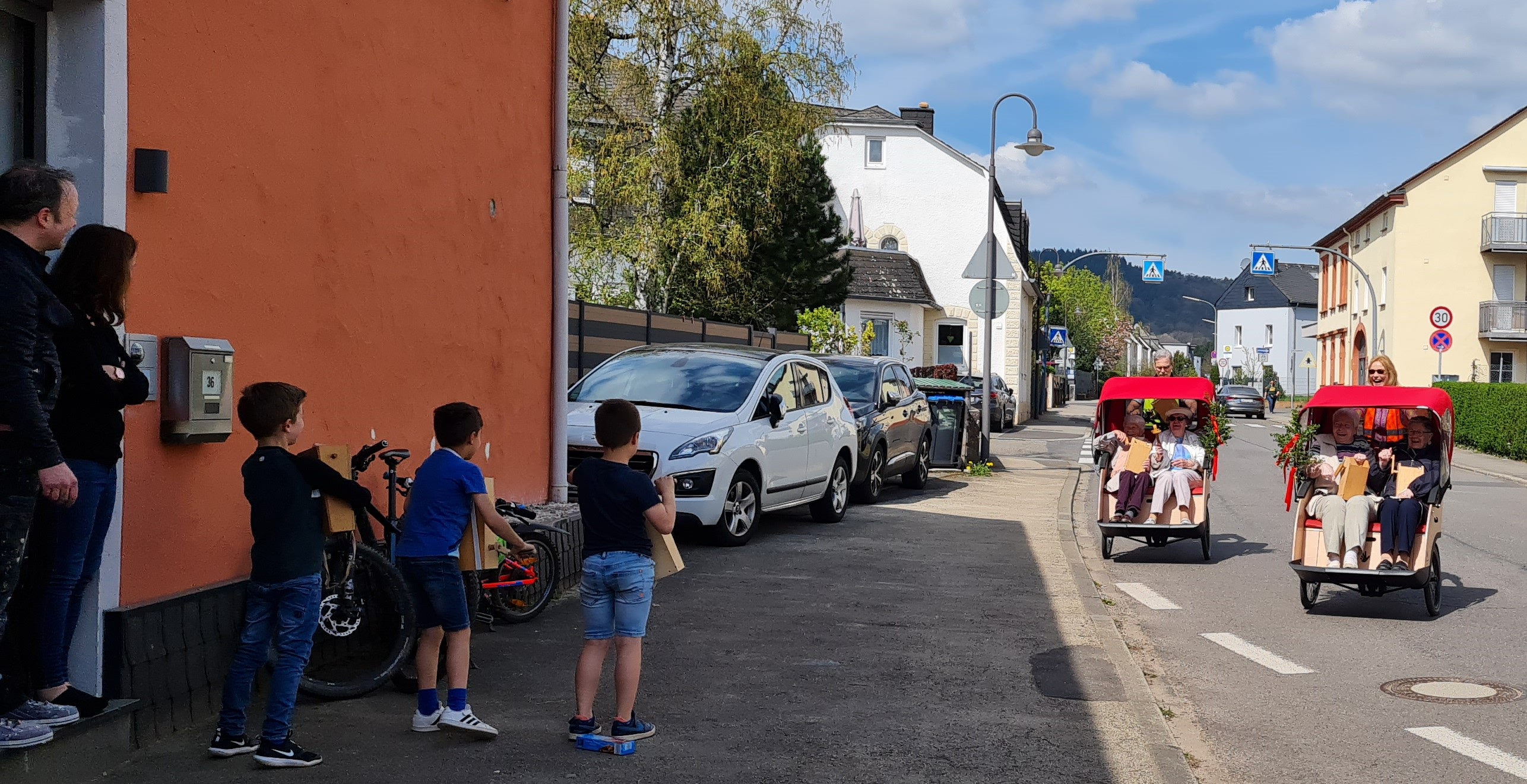 Eine Besonderheit am Karfreitag war das Klappern und Ratschen einiger Bewohnerinnen zur Mittagszeit in unseren beiden Rikschas in Schweich und im Stadtteil Issel.