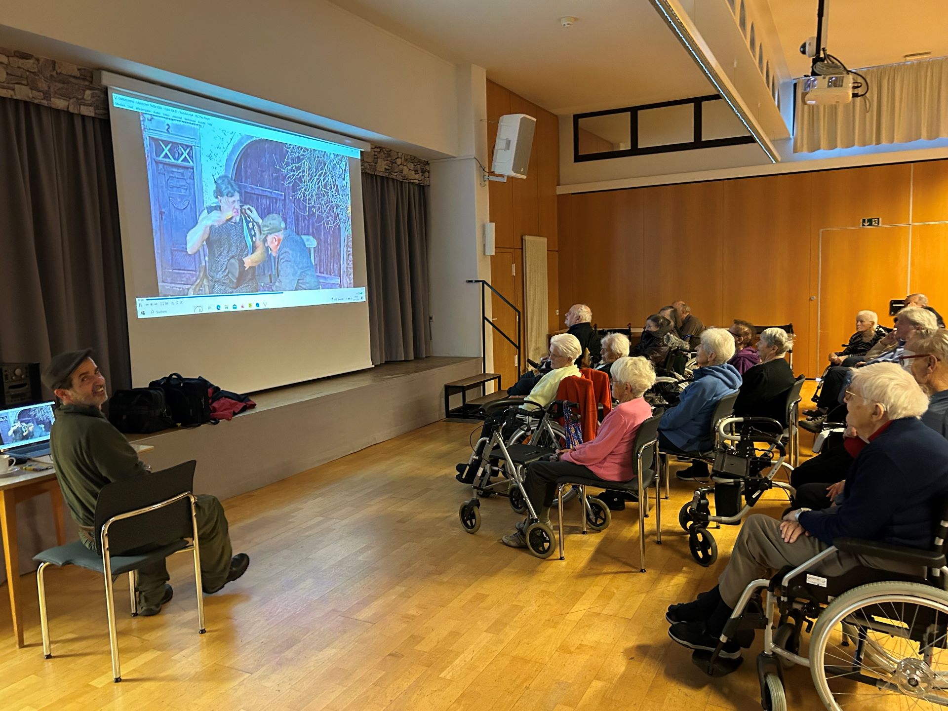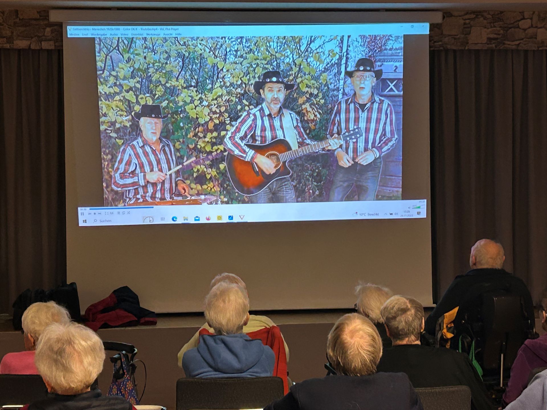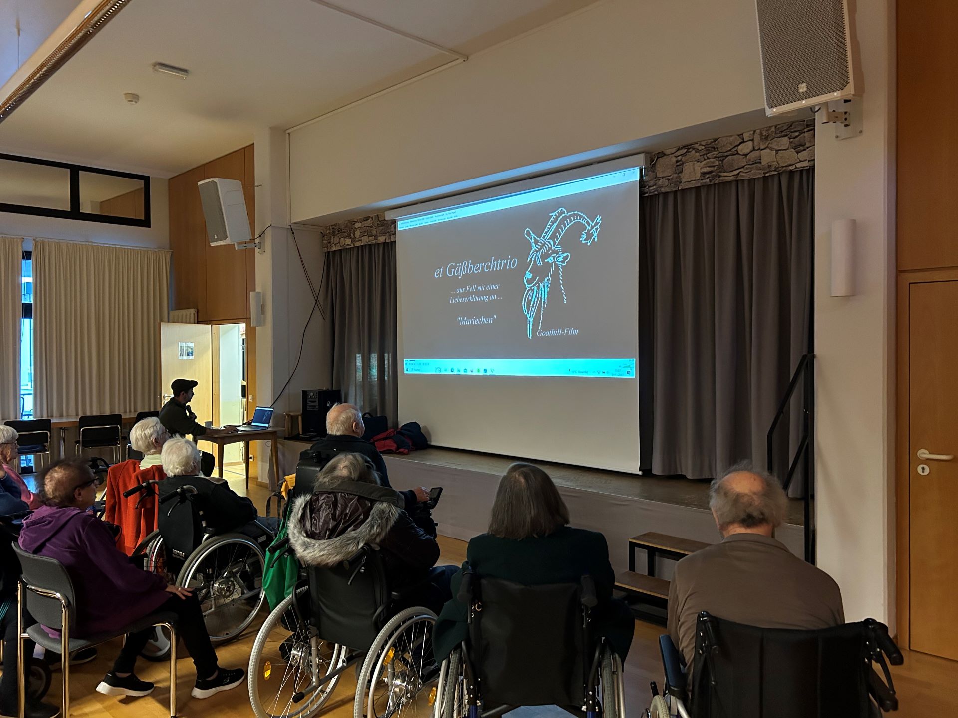 Zur Auflockerung zwischen den Bildkapiteln erfreute Herr Dewald mit Musikvideos von der Feller Mundartgruppe „et Gäßberchtrio“, wie die „Liebeserklärung an das Mariechen“ oder „Franziska und der Geißbock Theodor“.