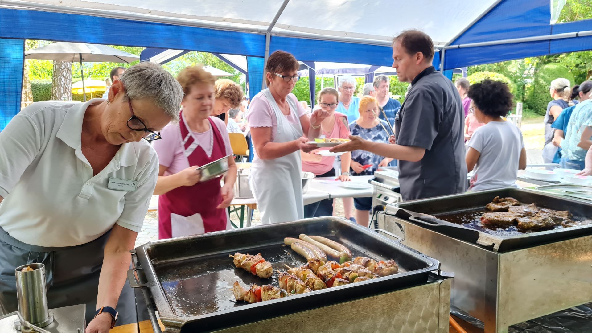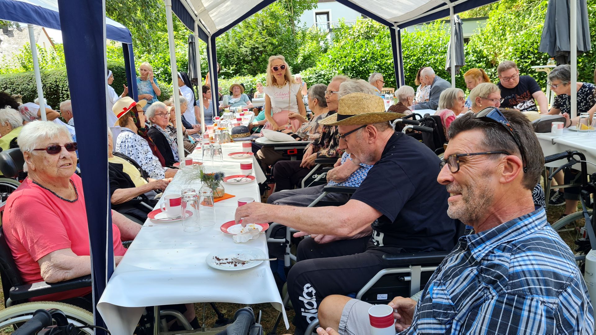 So haben wir uns gedacht, das alljährlich anstehende Sommerfest wieder auf drei Termine zu verteilen: Jeder unserer 3 Wohnbereiche (WB 1-3, WB 4-6, Haus Elisabeth) hatte den parkähnlichen Garten an der Neustraße einen Nachmittag lang für sich und feierte im Beisein von vielen Mitarbeitern, Angehörigen und auch weiteren Besuchern bei herrlichem Wetter.