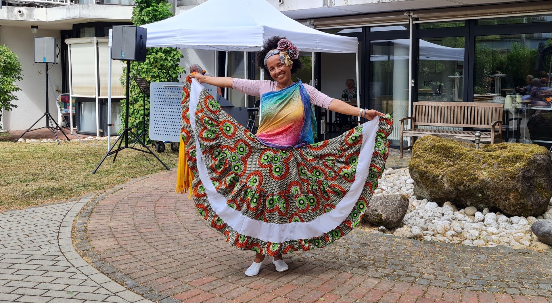 Ein weiteres Highlight an diesen Nachmittagen gestaltete Sr. Maria do Socorro Rosa Mendonça mit ihren farbenfrohen, selbst genähten Kostümen, in denen sie Tänze aus ihrer Heimat Brasilien darbot.