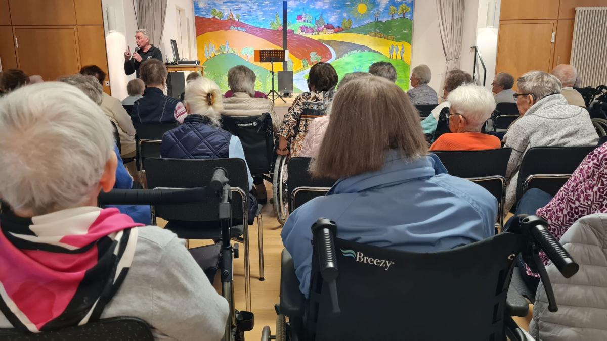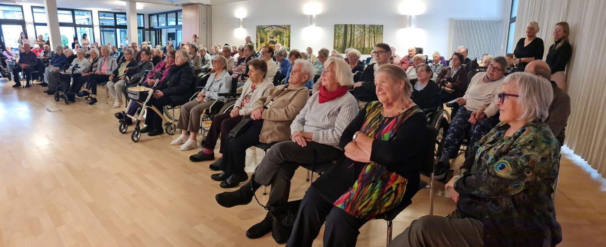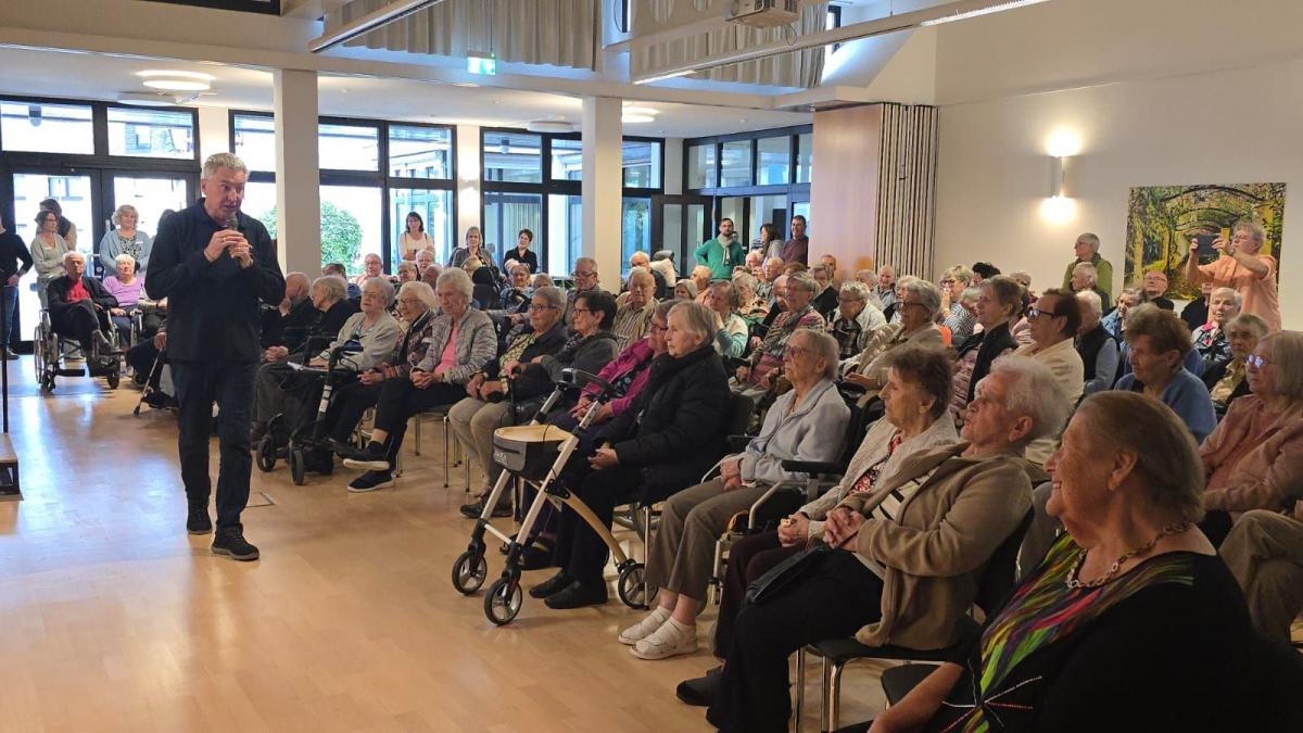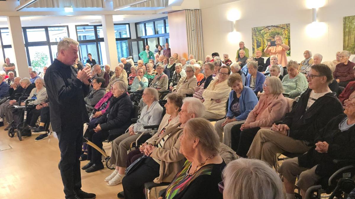 Es ist wahrlich nicht alltäglich, dass ein bekannter Sänger in einem Altenheim auftritt. Für die Bewohnerinnen und Bewohner vom Seniorenhaus St. Josef war am 26. September ein besonderer Tag auf den sie sich schon seit langem gefreut hatten. Der Veranstaltungssaal war bis auf den letzten Platz gefüllt, als Startenor Thomas Kiessling die Bühne betrat.