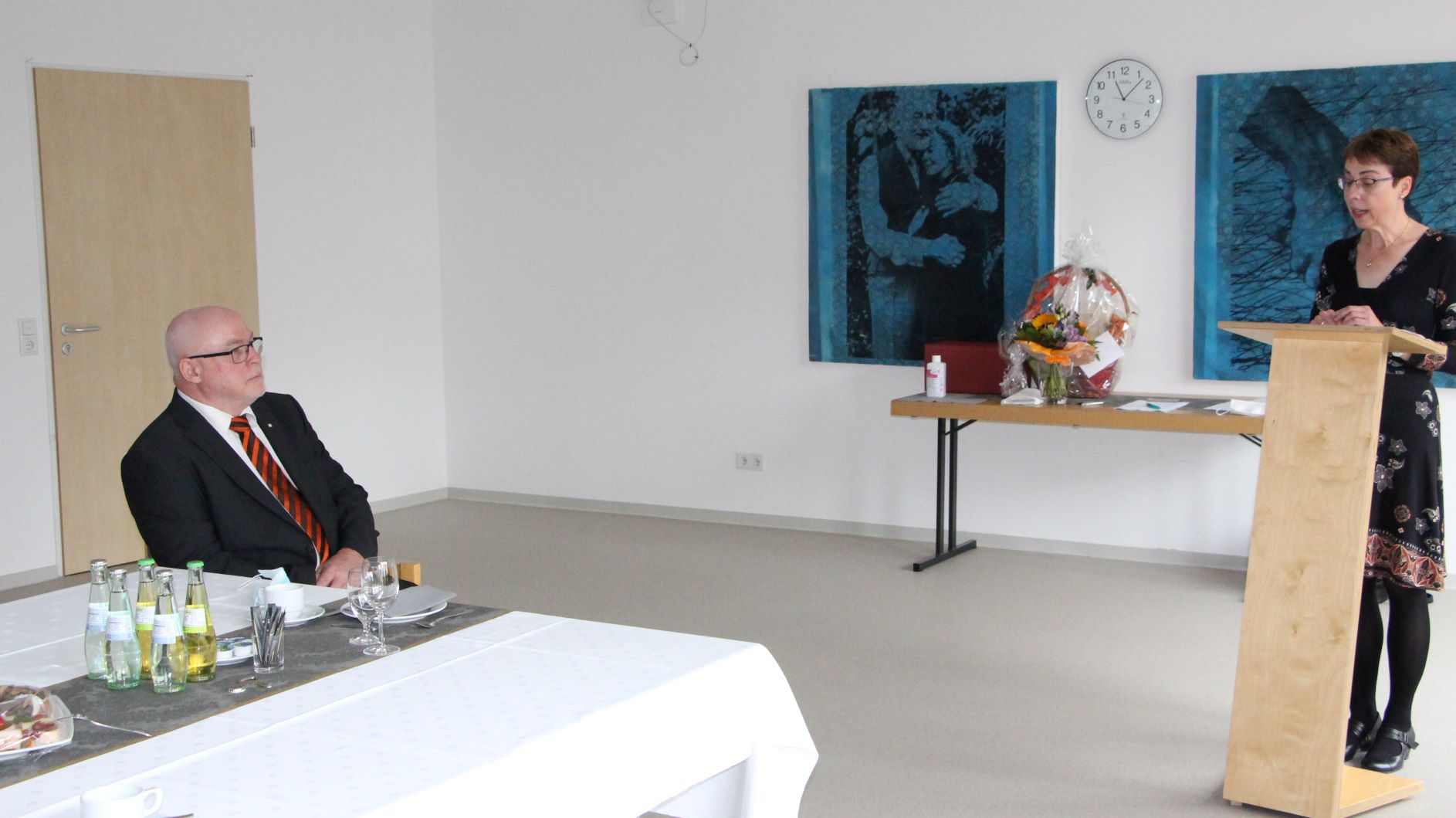 Zu seiner Verabschiedung waren die Geschäftsführerin Birgit Keuler, Aufsichtsratsvorsitzender Rainer Ritzenhöfer, Konventoberin Sr. Ana Rech und seine Kolleginnen und Kollegen aus den Einrichtungen der Franziskanerinnen vom hl. Josef Seniorenhilfe GmbH angereist. Birgit Keuler hob bei ihrer Ansprache hervor, dass die Strukturen im St. Vinzenz-Haus in den letzten 20 Jahren sukzessive modernisiert und das Betriebsklima merklich verbessert worden ist. Heute habe das St. Vinzenz-Haus aufgrund der hier geleisteten guten Qualität auf Basis franziskanischer Grundwerte und des vorbildlichen Umgangs der Mitarbeiter, einen hervorragenden Ruf im weiten Umfeld. Einen großen Anteil daran habe Herr Fromme, der das St. Vinzenz-Haus als sein Haus ohne „Wenn und Aber“ angenommen hat und sozusagen „Tag und Nacht“ präsent war.