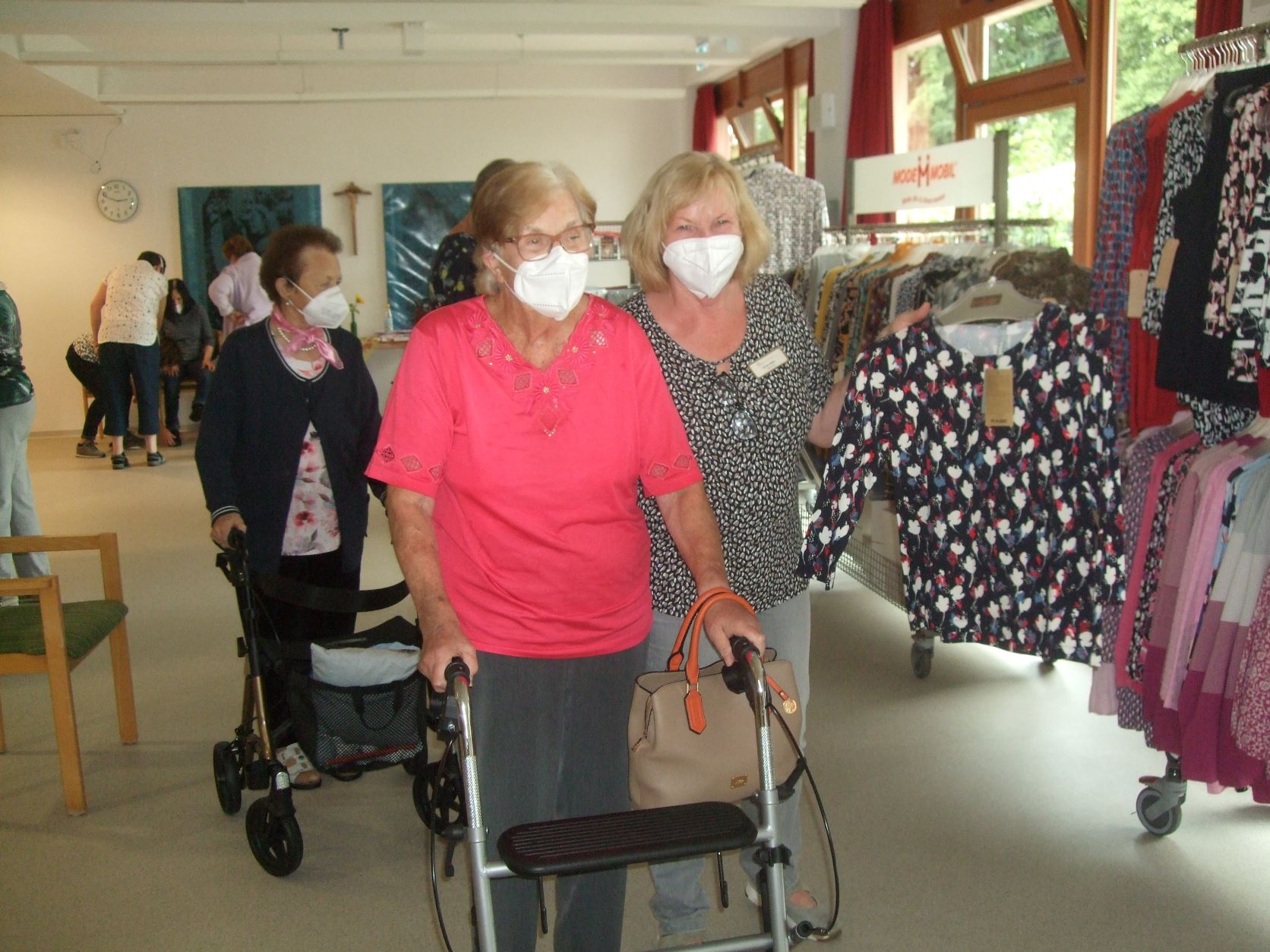 Für mode- und trendbewusste Seniorinnen und Senioren war am 26. August der Besuch eines mobilen Modemarktes eine willkommene Abwechslung. Viele unserer Bewohnerinnen und Bewohner suchten sich schöne Kleidungsstücke aus, probierten eifrig an und genossen die Zeit. Ob Schuhe, Unterwäsche oder auch ein schönes Twinset, für jeden Geschmack war in der mobilen Boutique etwas dabei. Es war schön zuzusehen, wie die Bewohner sich freuten, selbst mal wieder „shoppen“ zu gehen.