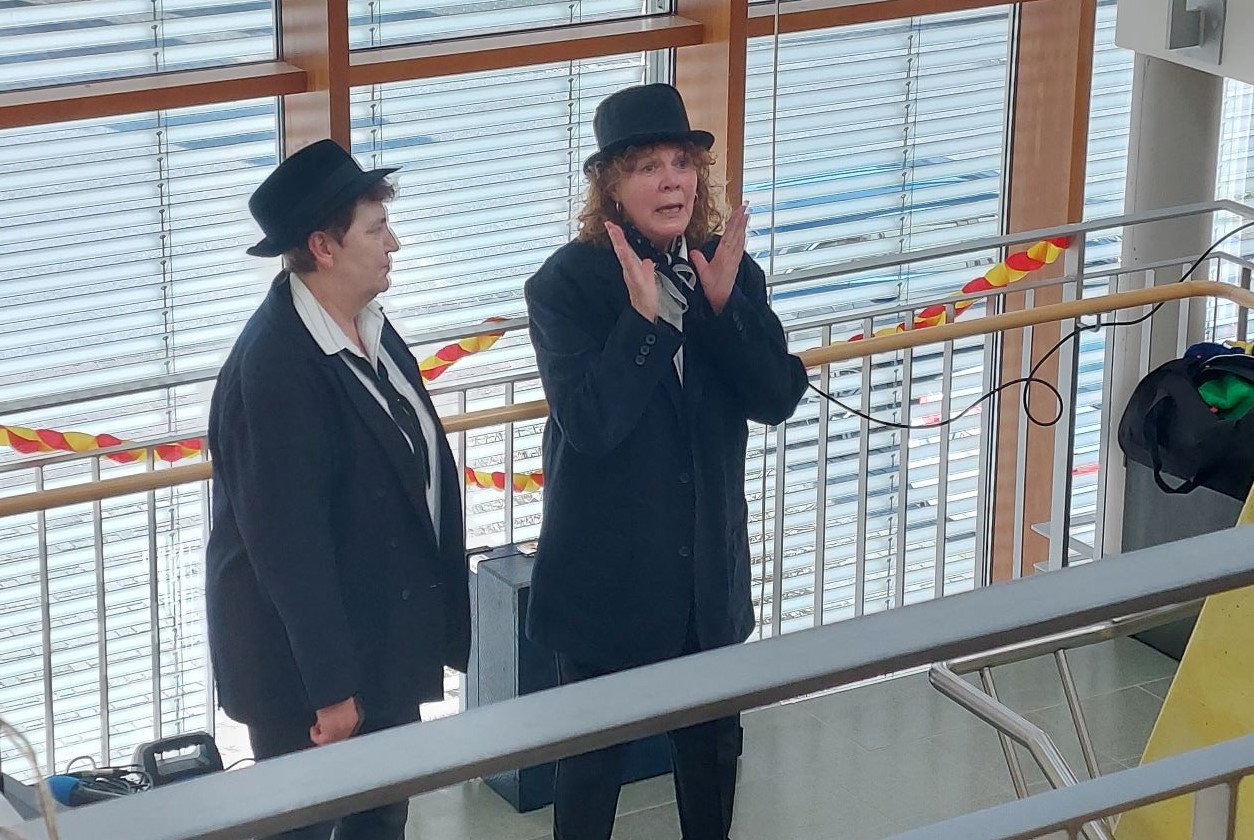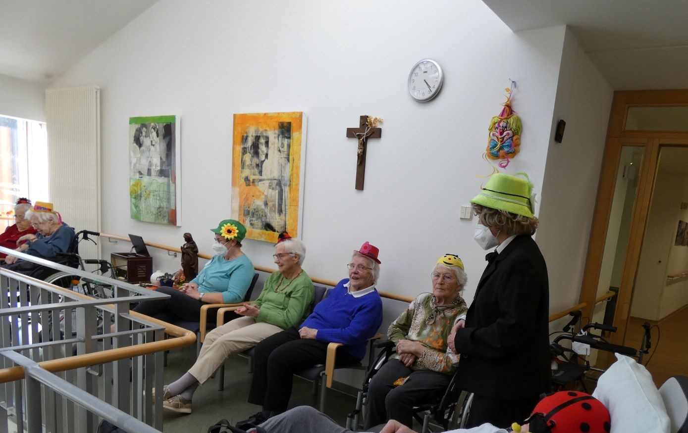 Nachdem die Büttenreden vorbei waren und uns die Bäuche vom Lachen weh taten, konnte sich mit „Dick und Doof“ (Johanna Feltes und Margret Britz-Moser) nochmal zu dem Lied „Let´s twist again“ bewegt werden. Alle Akteure wurden mit reichlich Applaus belohnt, so endete der diesjährige bunte Nachmittag, von dem die Bewohner noch Tage später erzählten.