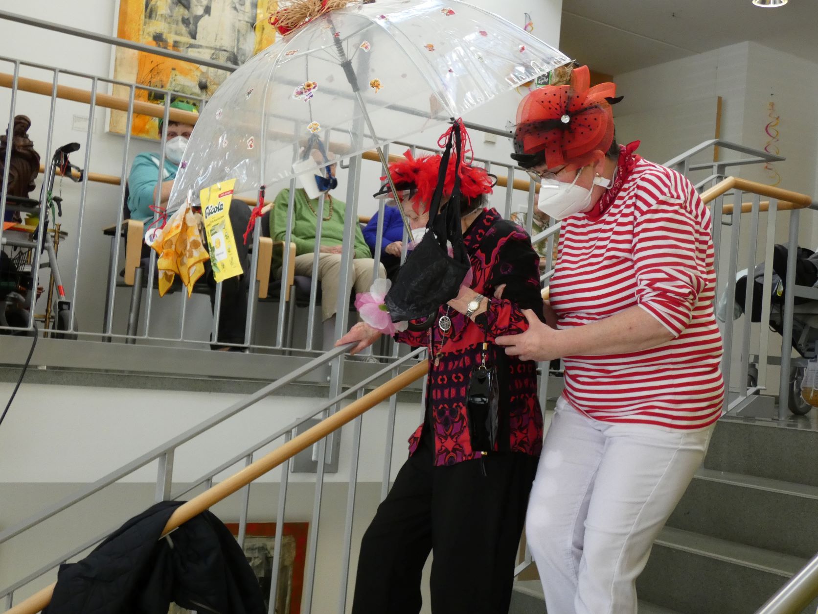Maria Steins (Bewohnerin des Betreuten Wohnens, hier in Begleitung unserer Mitarbeiterin Gaby Hauer-Schäfer) stellte ihren schönen Paraplui mit einem Lied vor.