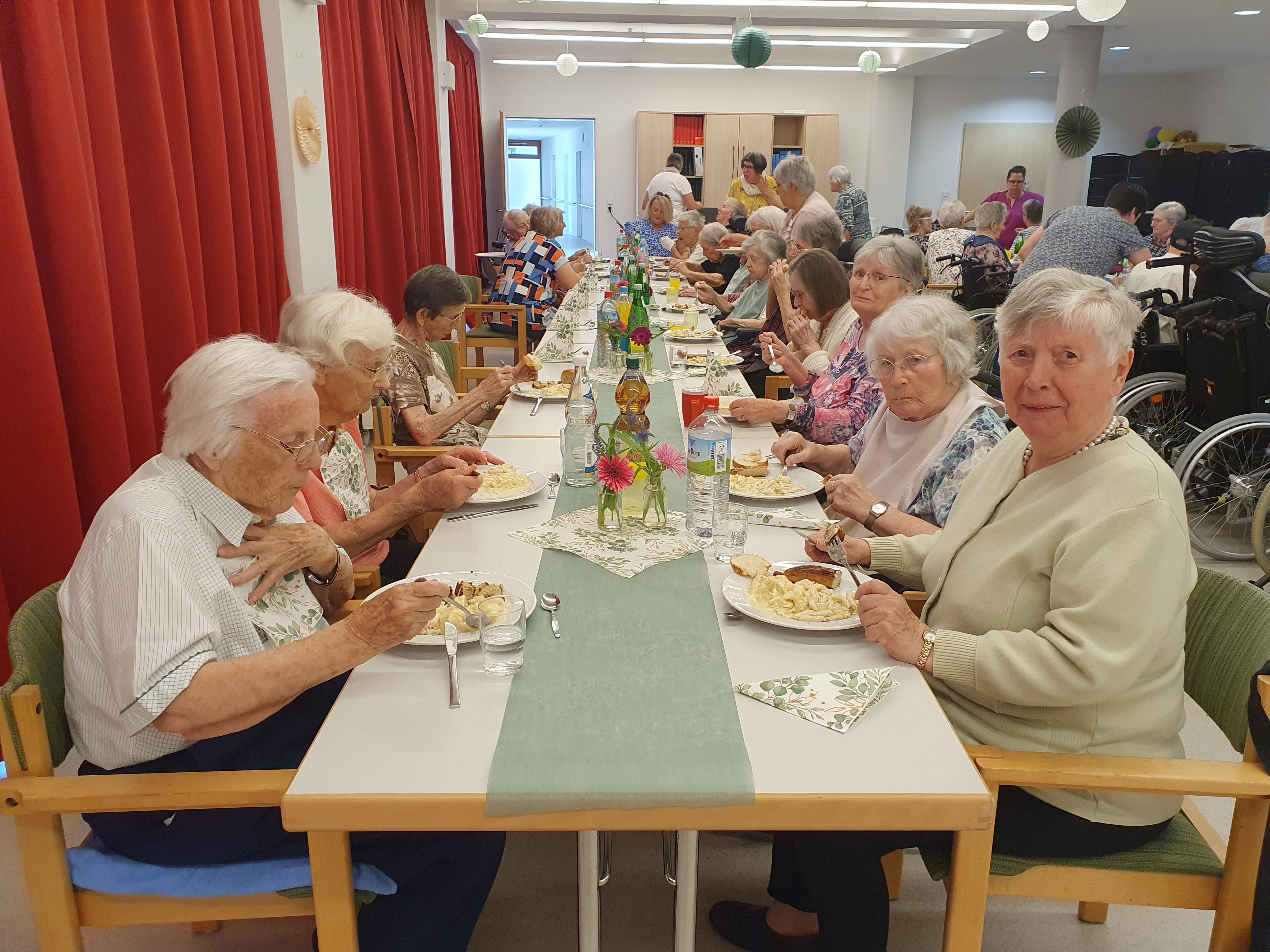 Für musikalische Unterhaltung sorgten Günter & Heinz, die schon mittlerweile „zum Inventar“ zählen. Während des Festes genossen die Gäste verschiedene Salate, Bratwürstchen, Eis und leckere Bowle, sowie den musikalischen Auftritt. Besonders die alten Lieder weckten Erinnerungen und sorgten für spürbare Freude bei Bewohnern und Besuchern.